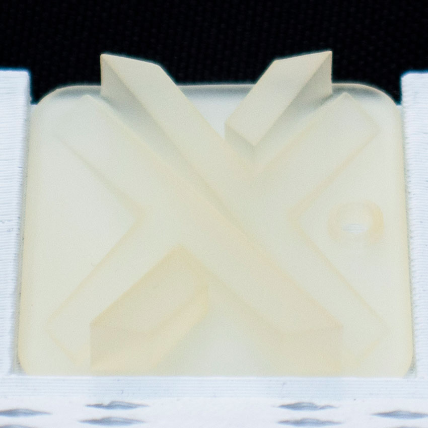 It has high elongation at break, high impact strength with excellent toughness. It is stiff and durable. Its glass transition temperature is 52°C. It offers a stunning white finish with clean sidewall quality. It is applied in general-purpose prototyping and snap fits.